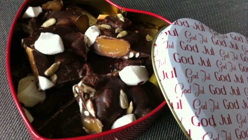 Det blir lite pyssligare att göra mjölkfri Rocky road eftersom du inte kan använda Dumlekolor utan måste göra egen kola. Istället för jordnötter och pistagenötter använder vi solroskärnor som vi tycker är väldigt gott. Tål du inte solroskärnor kan man utesluta det.