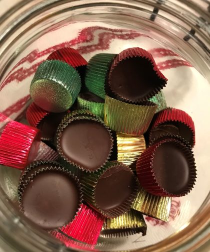 ca 40-50 st 100g neutral kokosolja200g mörk choklad (70%) (kolla så den är mjölk- och nötfri) Smält kokosoljan i en kastrull på medelvärme. Bryt eller …
