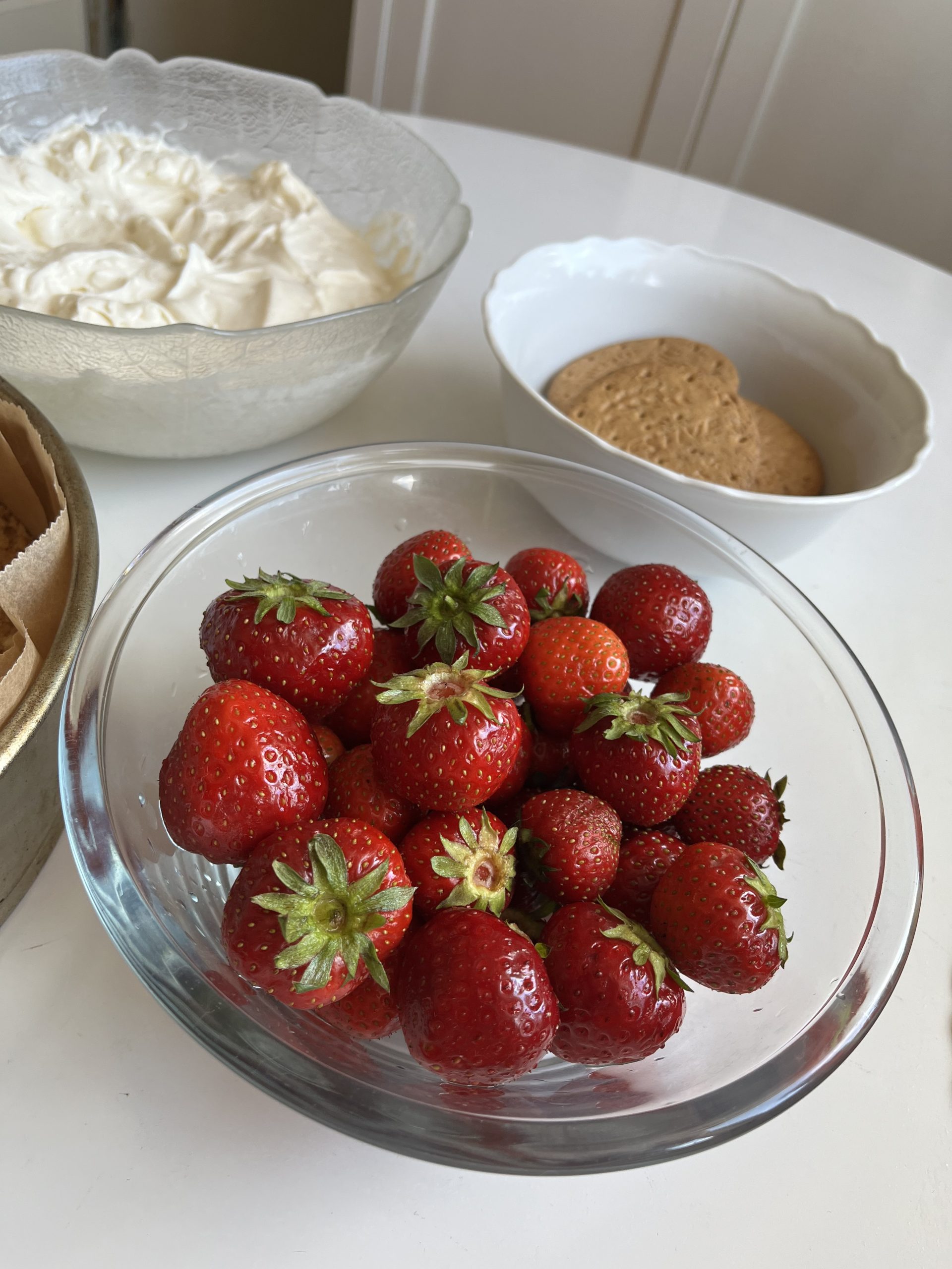 Till midsommarafton i år gjorde vi en jordgubbscheesecake istället för jordgubbstårta. Den blev somrig, bärig och lagom söt.