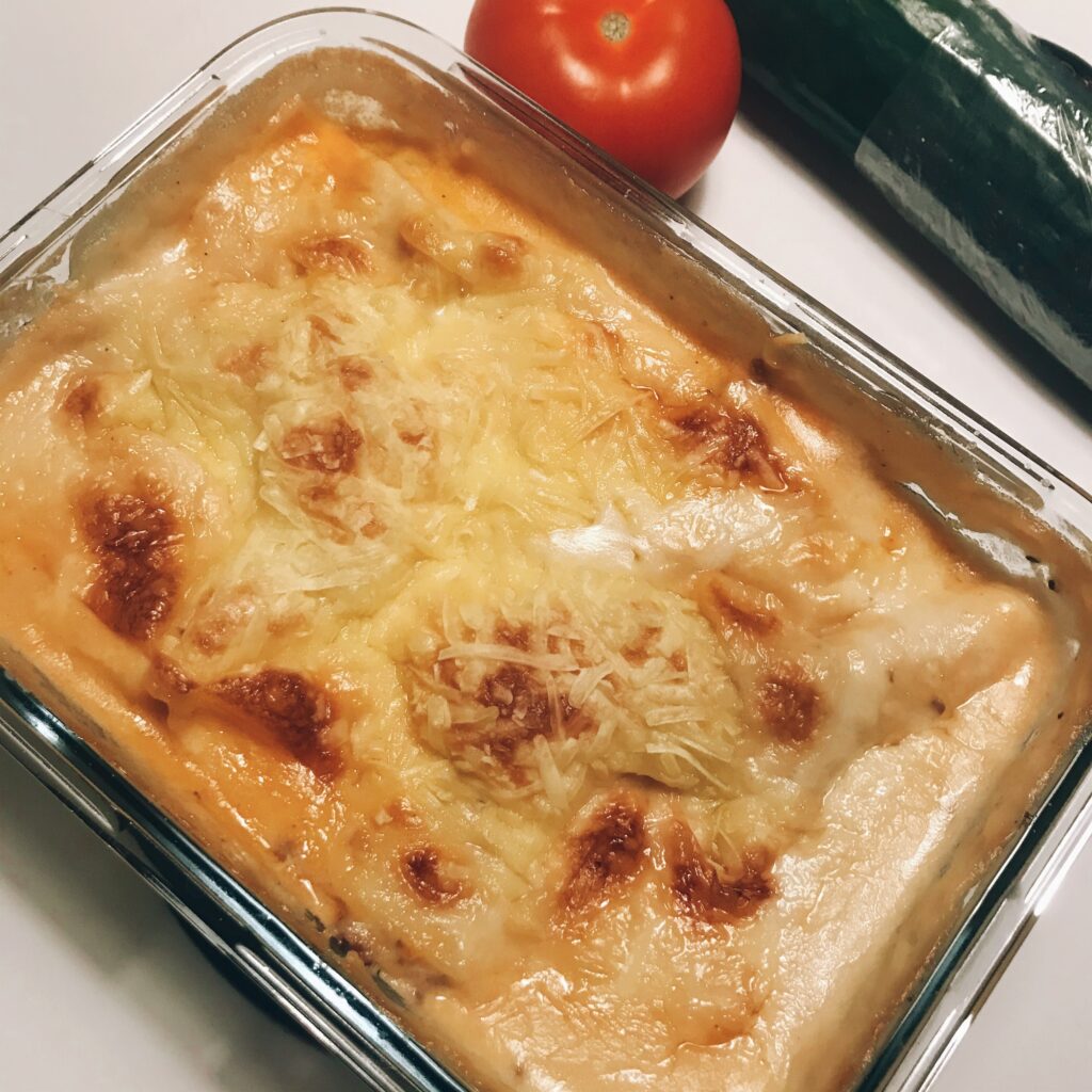 Vi brukar göra lasagne då och då. Det passar ju nästan jämt och är ju så gott! Vi brukar använda Oatlys havredryck deluxe eller deras iKaffe när vi gör den. Osten vi använder är Valio Oddlygood Veggie grated, det blir superbra om man blandar ner den mesta osten i såsen och sparar bara lite grann som man kan toppa med. Ibland använder vi bjäst flingor istället för den rivna osten, den ger en ostig smak. Man kan såklart göra béchamelsåsen utan ”ost” också.