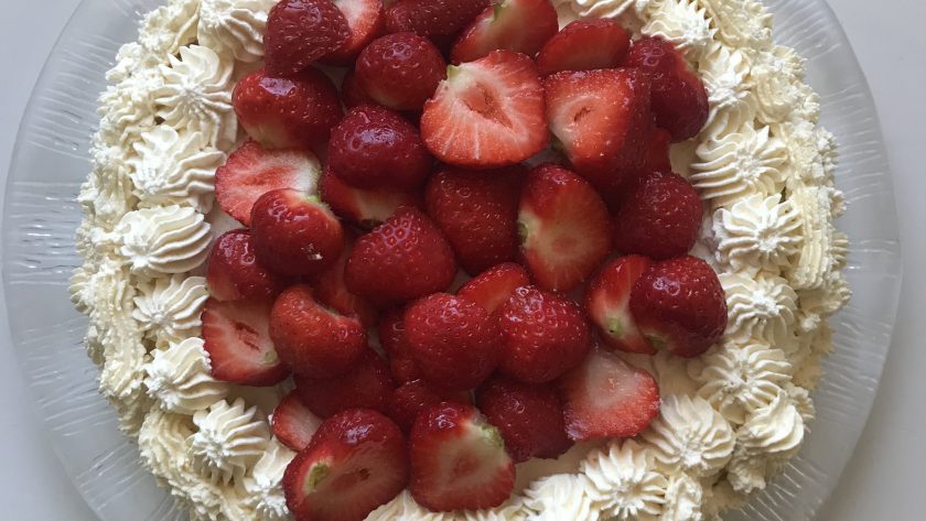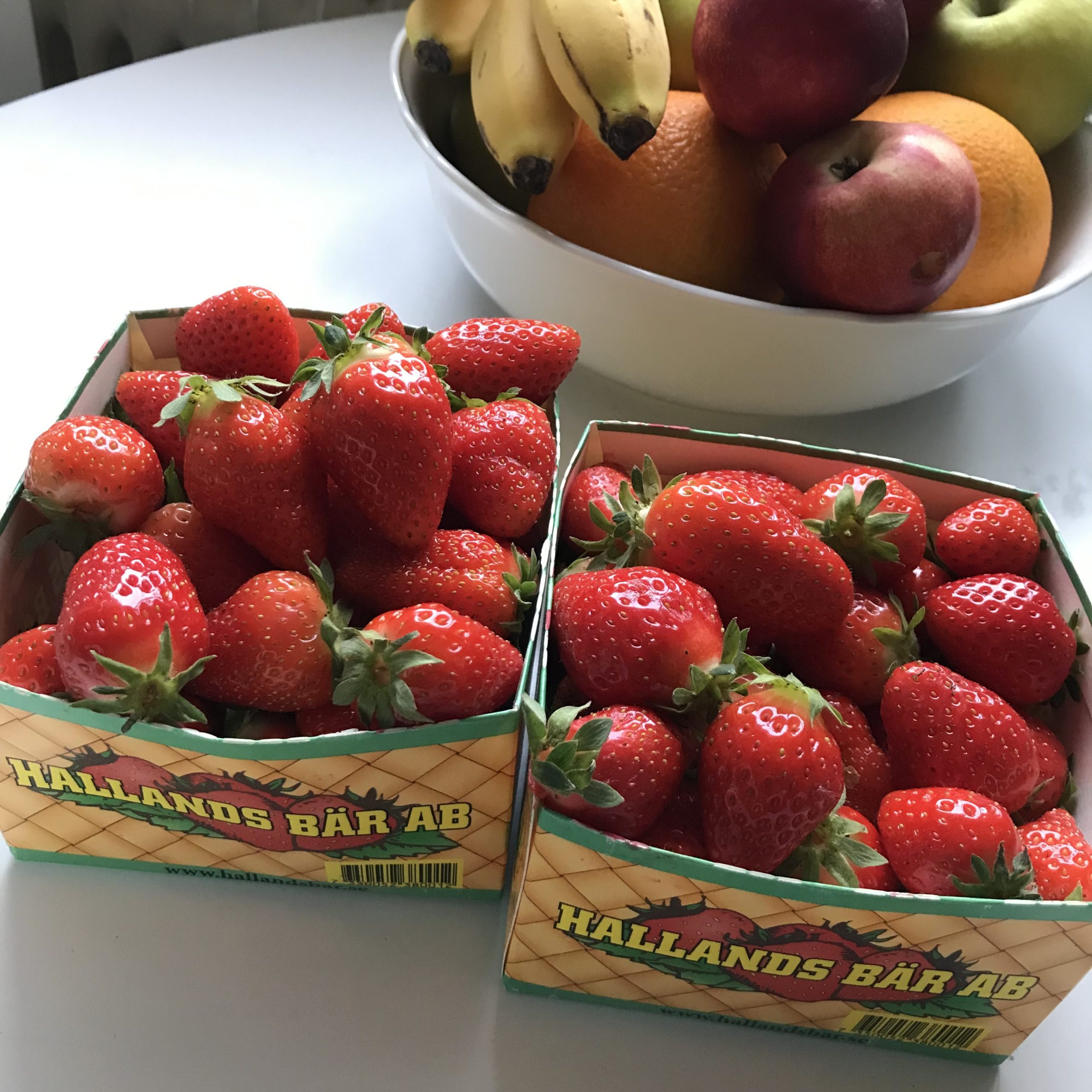 På midsommarafton så måste man ju ha jordgubbstårta. Nu för tiden finns det många produkter som man kan använda för att få en mjölk- och äggfri tårta. Vi använder ju även produkter fria från soja.