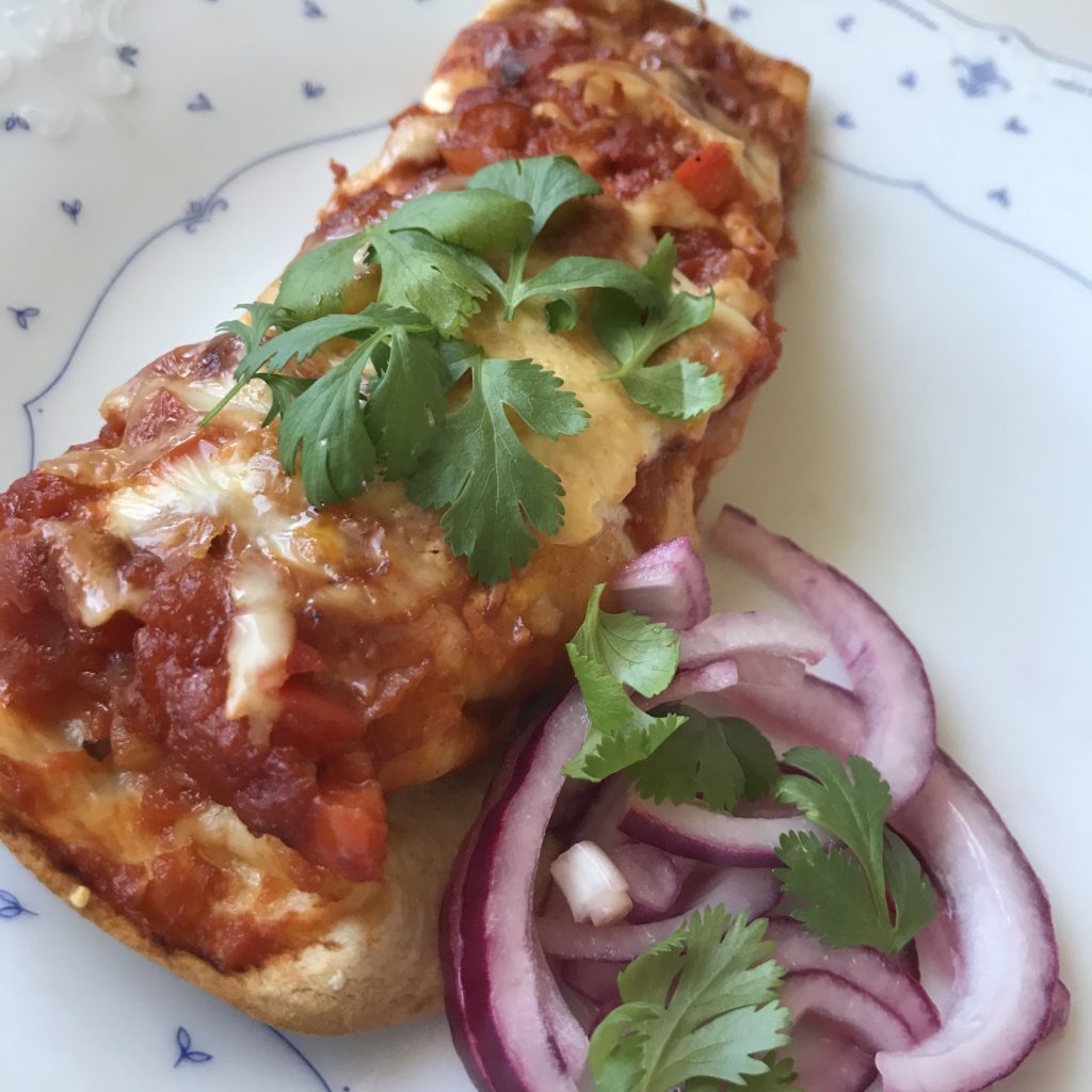 1/2 tsk chiliflakes om du vill ha mer styrka än den som salsan ger.