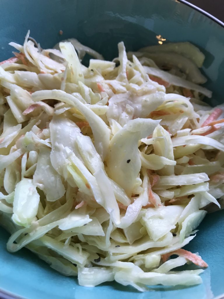 7. Servera med klyftpotatis och en krämig cole slaw.